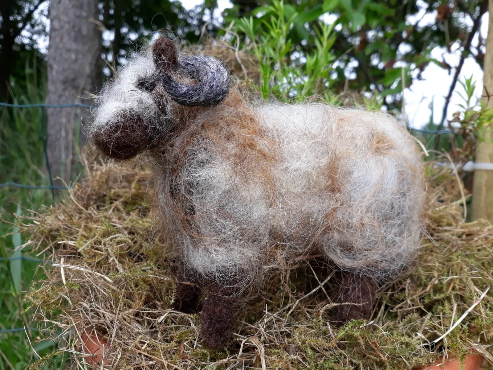 Vi filter et lille får eller et andet dyr af råuld. Underviseren har stor erfaring med nålefilt og giver en grundig indføring i teknik og selve materialet råuld, som er produceret på gården.